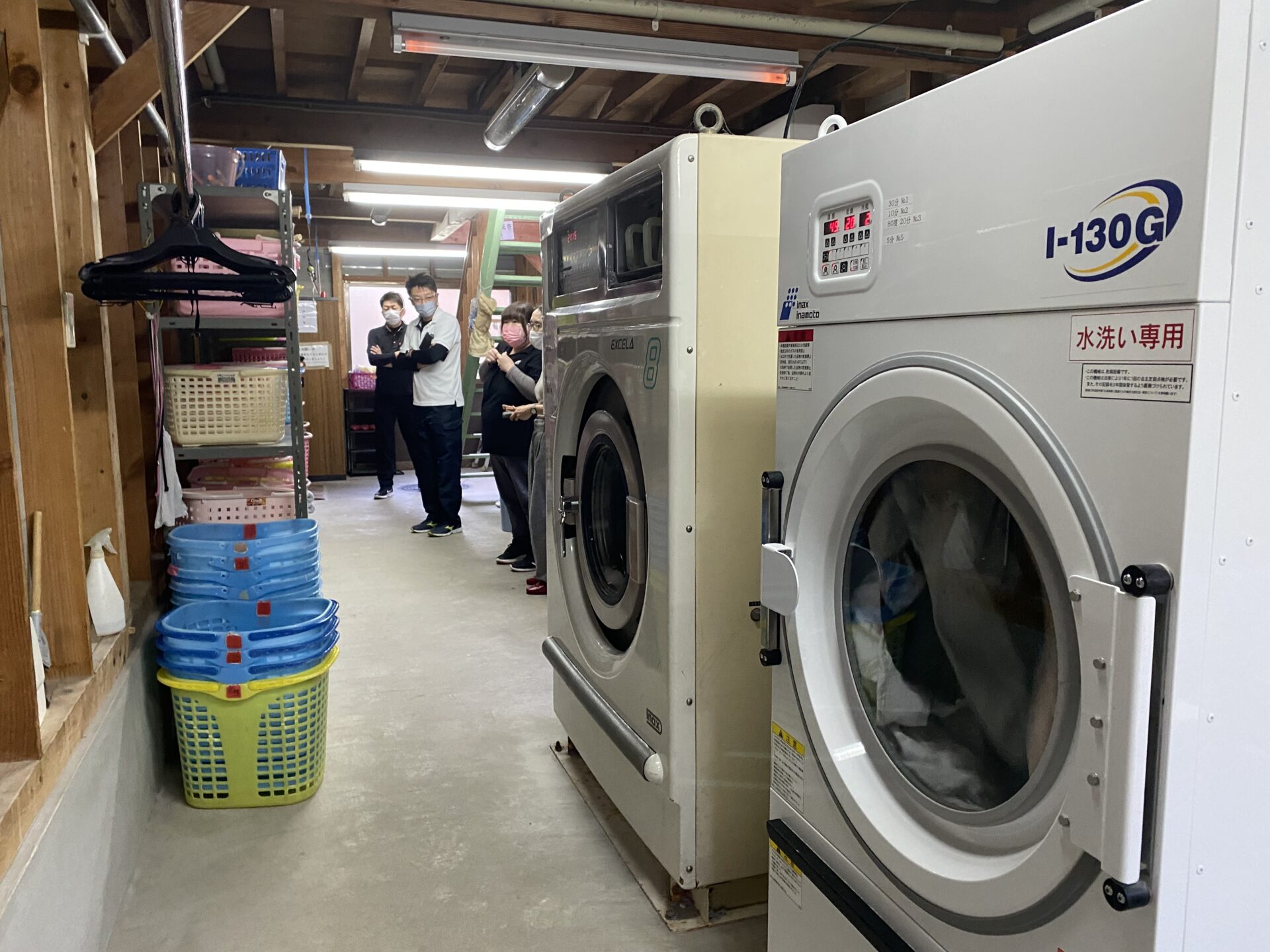 (上下:設計当初、既存施設を案内していただいた時の様子。施設長とサービス管理責任者の皆さんで裏の裏までご案内いただき、現状困っている点やご希望をお伺いしました)
