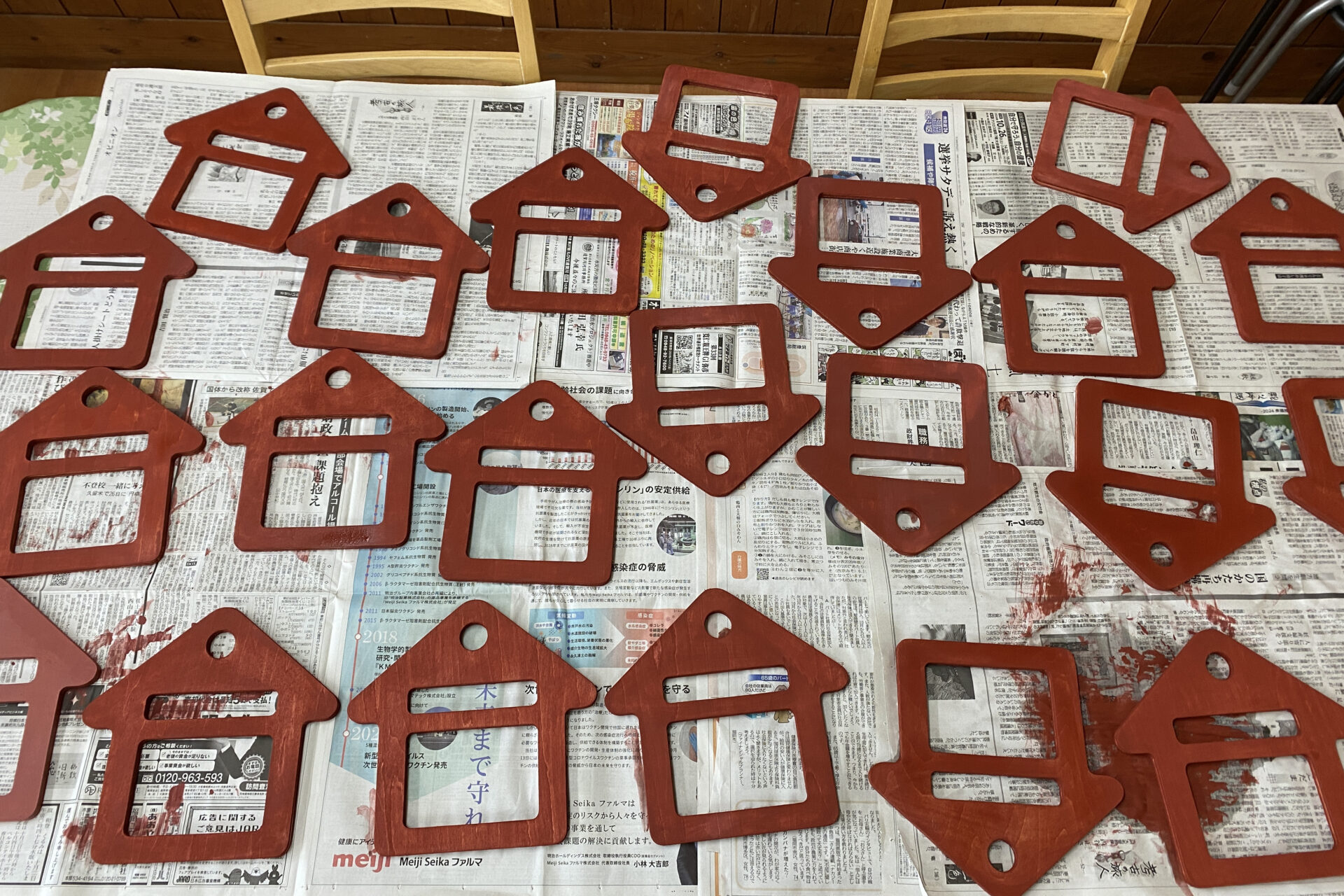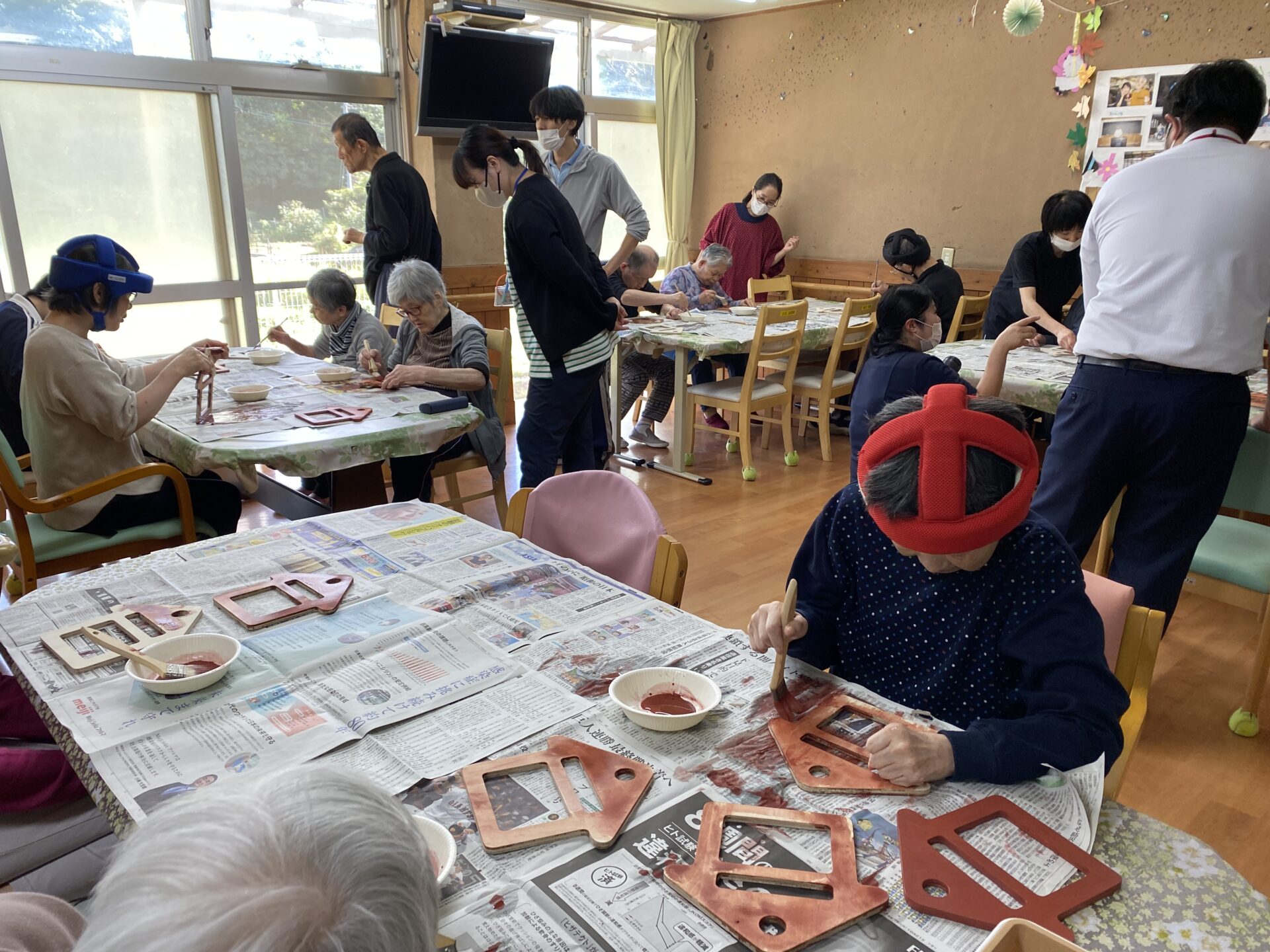 (ルビアの個室に設置するためのネームプレートを利用者さんに色塗りしてもらった時の様子。ネームプレートには、顔写真も貼れるようになっいるので、利用者さんが自分のお部屋が分かりやすくなっている)